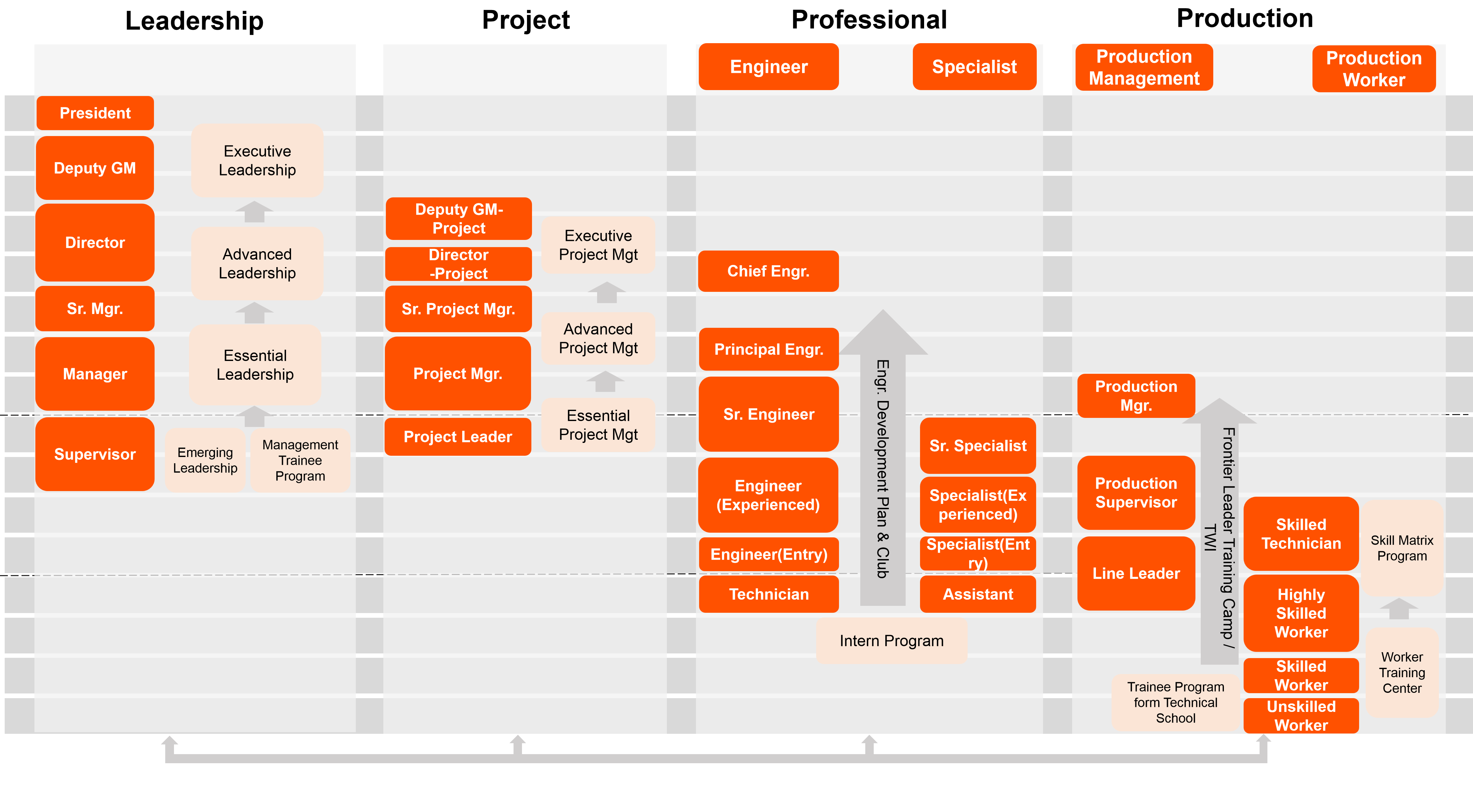• According to their own positioning, advantages and the company's development needs, employees can develop in multiple paths such as management, projects, profession, production, etc., and can give full play to their personal advantages and values to achieve success in career development.